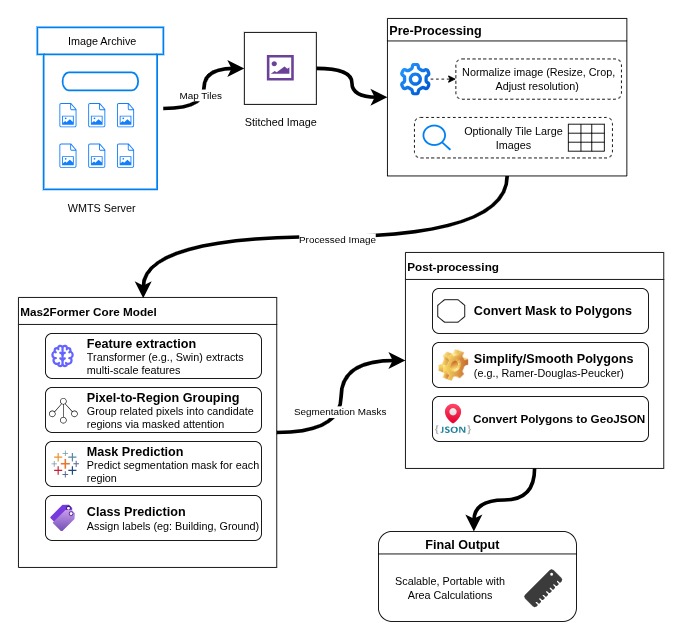 In our use case, this was a big step forward. It meant we didn’t have to juggle multiple models, which had to work together to detect and then segment. With Mask2Former, we could rely on a single model to provide clean, labeled masks directly from satellite images.