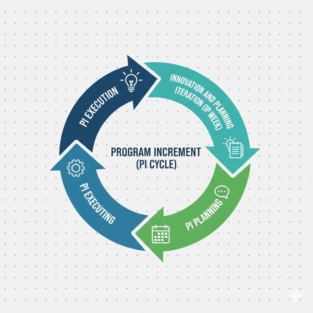 A circular flowchart illustrating the continuous Program Increment (PI) cycle