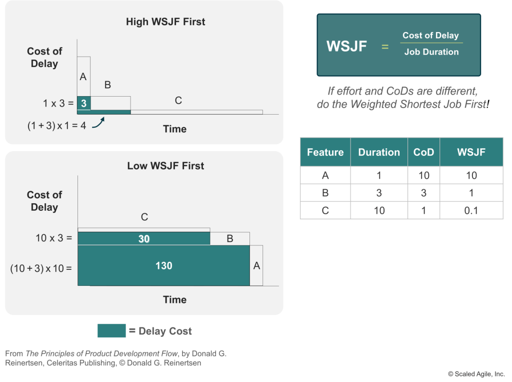 A sample WSJF calculation reflecting business value and job size
