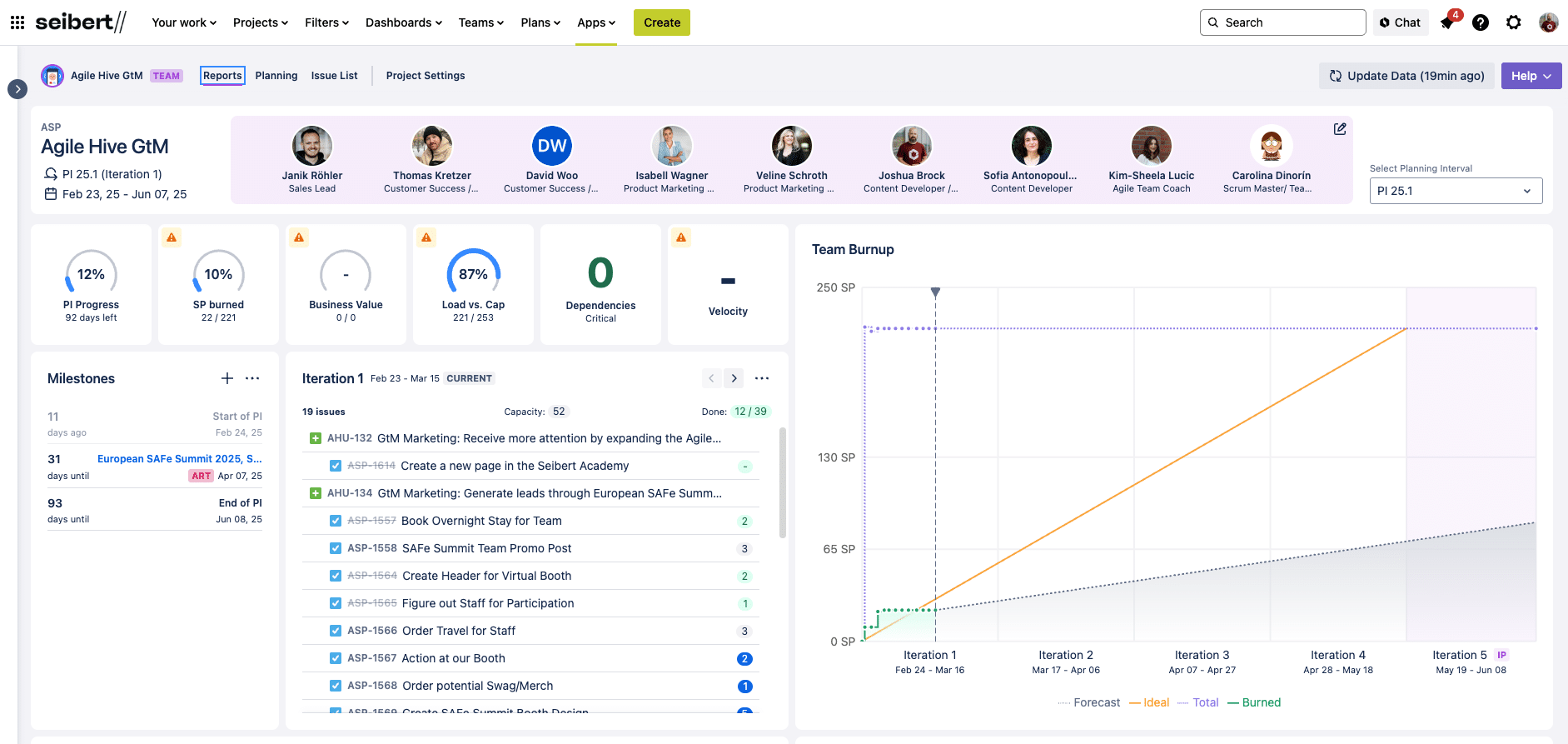 Visualizing dependencies and PI planning in Agile Hive