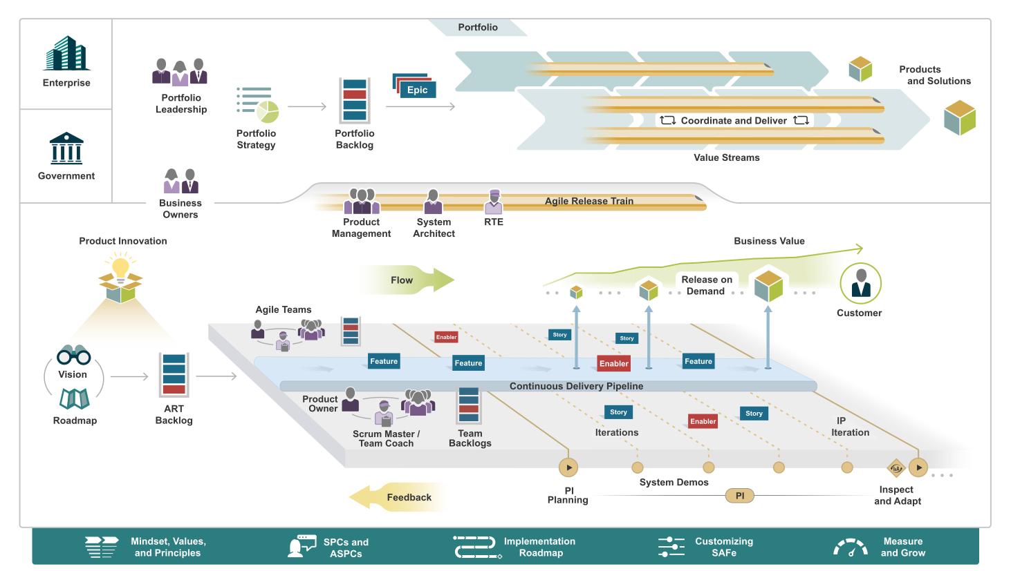 • Innovation and Planning (IP) Iteration (2 weeks): Inspect & Adapt, innovation, and preparation for the next PI