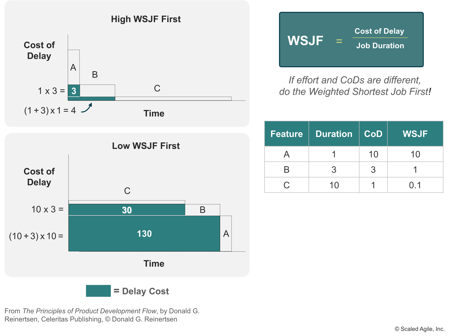 A sample WSJF calculation reflecting business value and job size