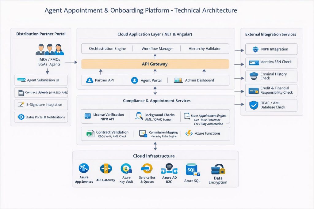 - Cloud Orchestration: Hosted on Microsoft Azure, the platform utilizes a Service Bus architecture for queue-based processing. This prevents system bottlenecks during peak onboarding seasons.